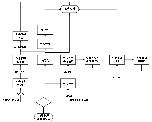 2.对于不可预见性的调串课,需要任课教师及时告知教务焦海丽处,由焦海丽老师上报教务处曲研睿老师和质量控制处赵宏涛(暂时)老师;任课教师告知教学副院长,并且同时告知授课班级班长或学委;
