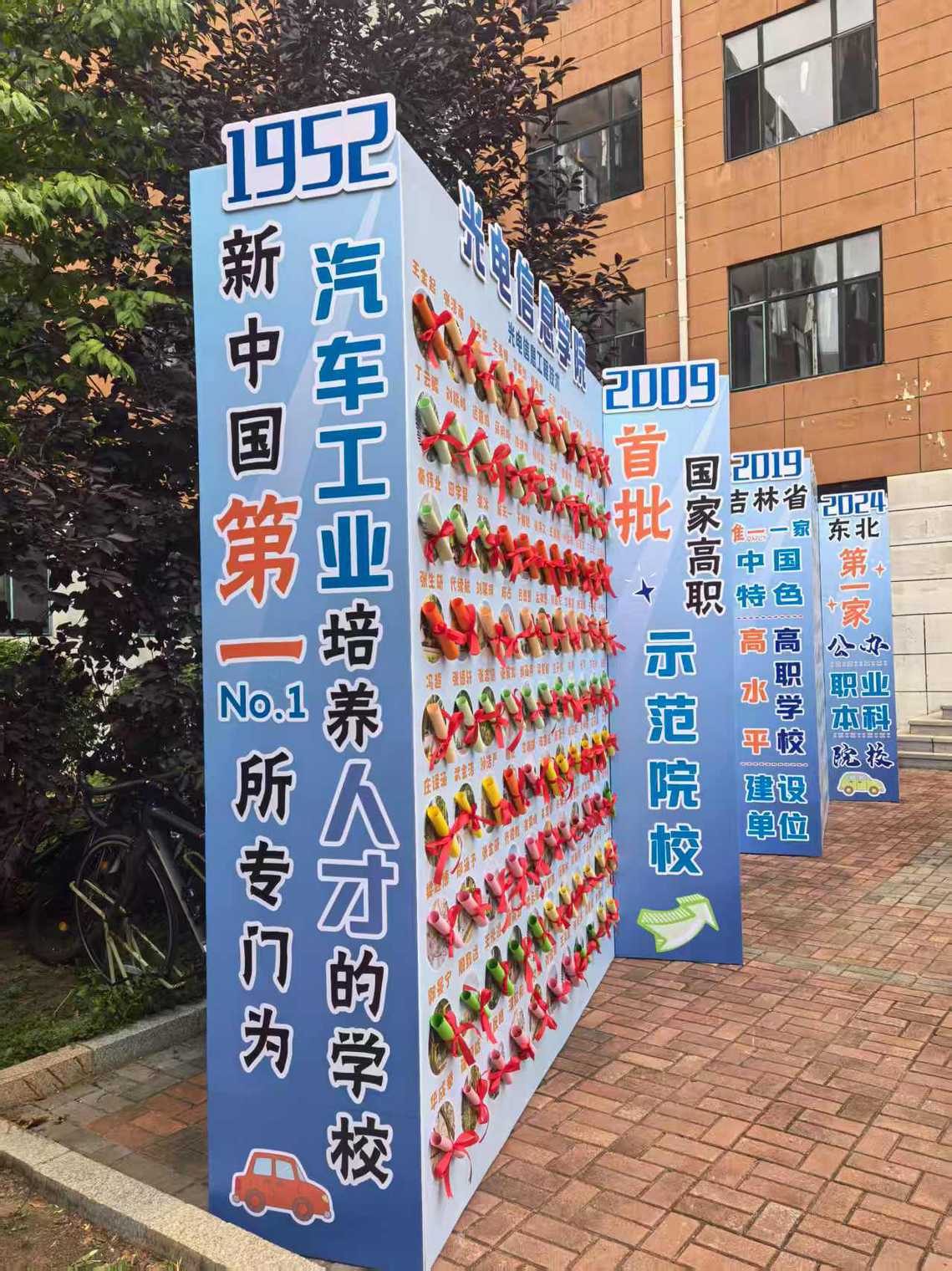 本次迎新活动核心亮点为“校史姓名墙”创意设计。展板以1952年建校历史为脉络,将全体新生姓名嵌入校史长卷,形成“个人与集体共生”的视觉叙事。每份姓名下方均附专属藏头诗——由师生团队原创,以姓名首字为诗头,融入专业元素和传统文化,承载对新同学的美好祝福。当诗篇被取下后,展板将渐次呈现校园标志性风景图,寓意“新生力量激活校园活力,校园沃土培育青春梦想”的双向赋能理念。这一设计让新生在入学首日即感受到“历史与未来同频、专业与青春共振”的独特体验。