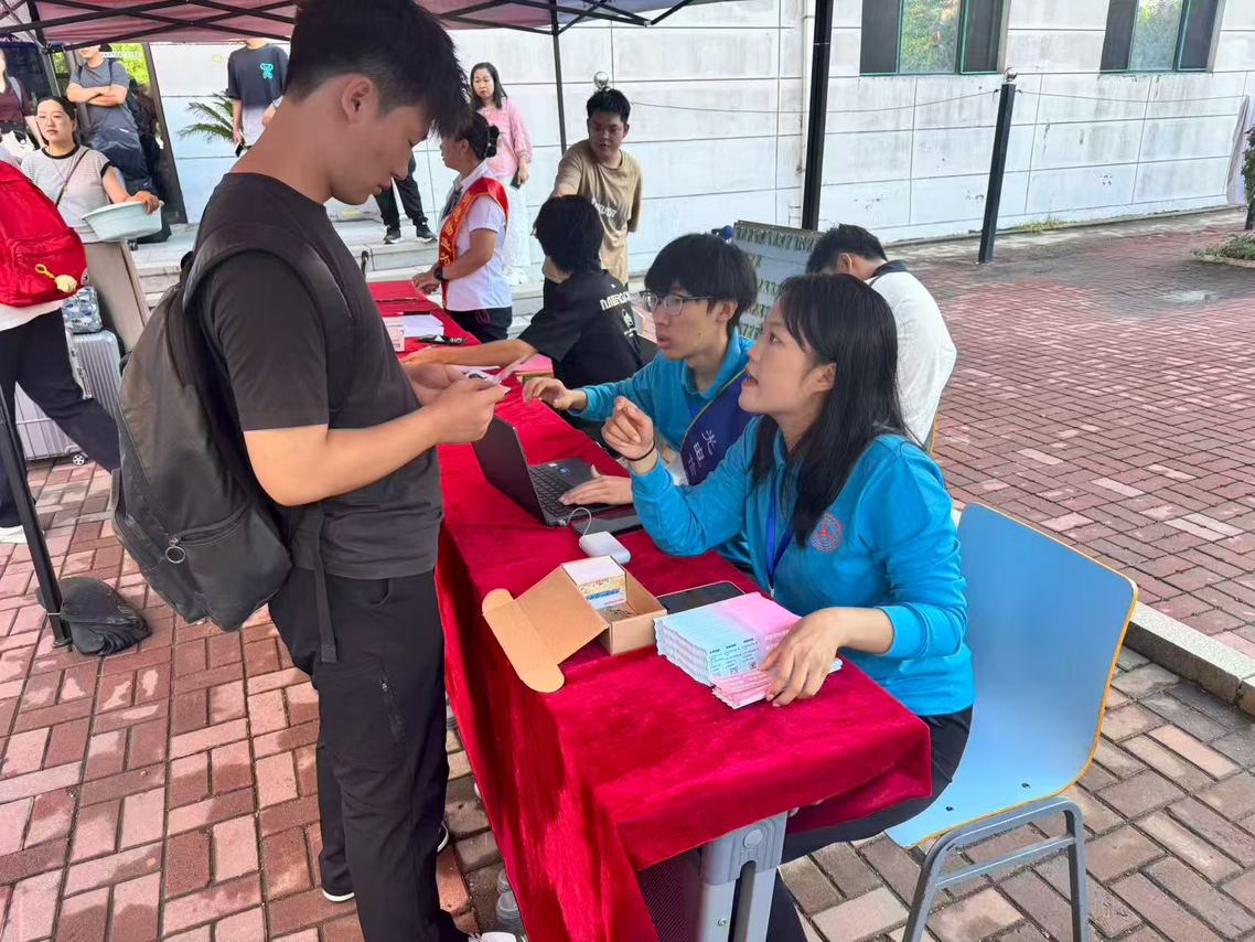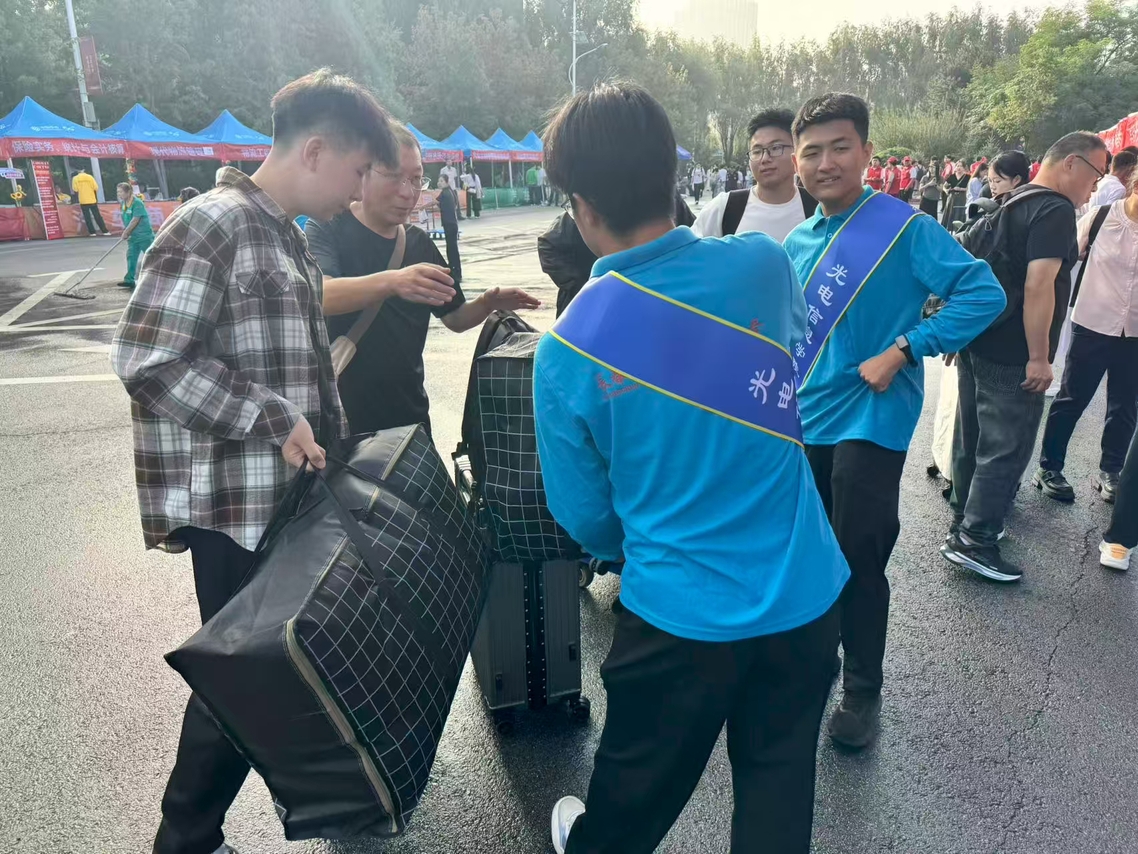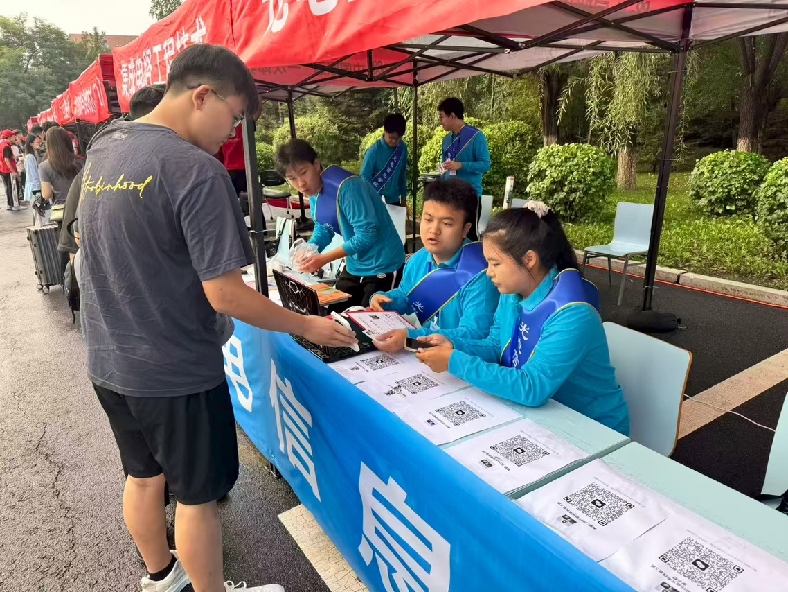 学院志愿者团队打造“从校门到宿舍”的全程陪伴式服务。志愿者们统一着装,清晨即开始值守,提供行李搬运、报到引导、专业咨询、材料发放等全链条服务。以专业态度解答家长关于专业发展的疑问,以青春活力传递校园生活的温暖细节。家长们纷纷表示:“志愿者们用热情消除了新生的陌生感,用细致点亮了青春的起点。”