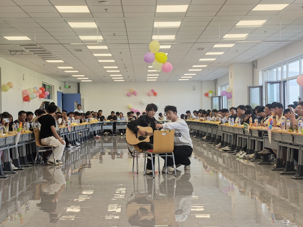 联欢会上,学院领导向同学们致以诚挚问候,勉励大家勤奋学习、追求卓越。随后,同学们献上精彩纷呈的节目:舞蹈《Angel》轻盈灵动,歌曲《她踏上了旅程》温情婉转,吉他弹唱《成都》悠扬动人,新疆学生带来的民族舞蹈更是热情奔放,展现了多元文化的魅力与民族团结的和谐画卷。互动环节中,“抢凳子”“猜灯谜”等游戏趣味横生,师生同乐,现场气氛热烈融洽。