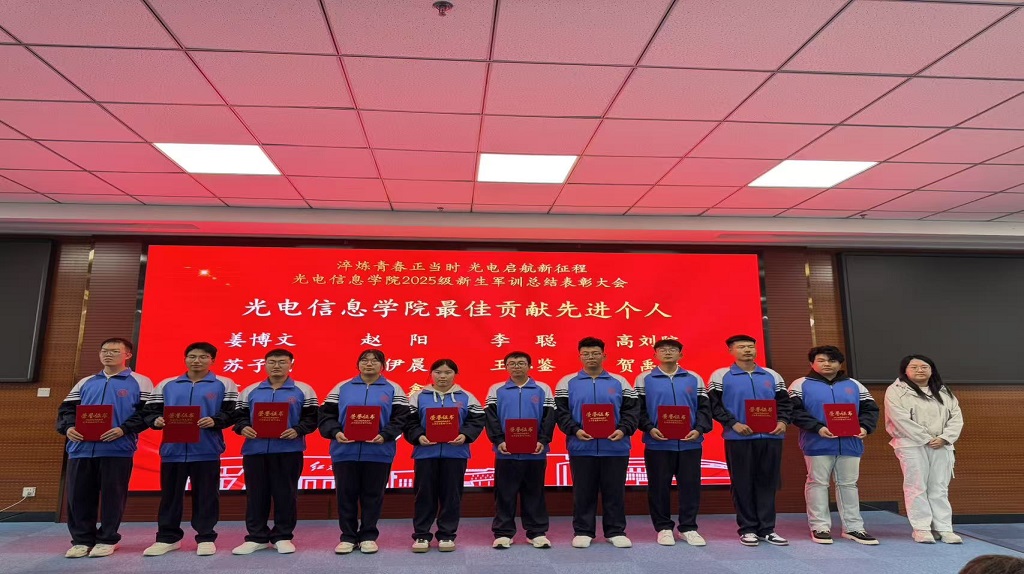 金秋十月,硕果盈枝。10月9日下午,光电信息学院2025级新生军训总结表彰大会在庄严热烈的气氛中拉开帷幕。大会旨在全面总结军训成果,表彰先进典型,激励全体新生延续优良作风,开启崭新的大学生活篇章。会议由辅导员王羽主持。