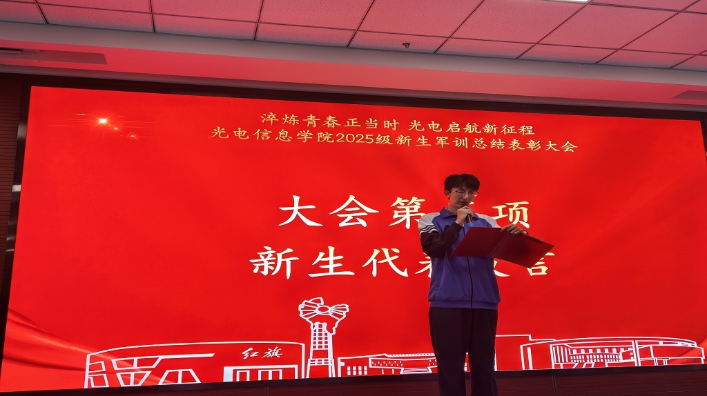 他们首先向在军训中辛勤付出的学院领导、辅导员老师及学生会工作人员表达了诚挚的感谢。随后,他们动情回顾了难忘的军训时光,并表示,未来他们将把在军训中淬炼出的坚韧意志、严明纪律和团队精神,转化为未来刻苦学习、追求真知的强大动力,立志传承学院优良传统,不负韶华,砥砺前行,为成为一名优秀的“光电人”而不懈奋斗。