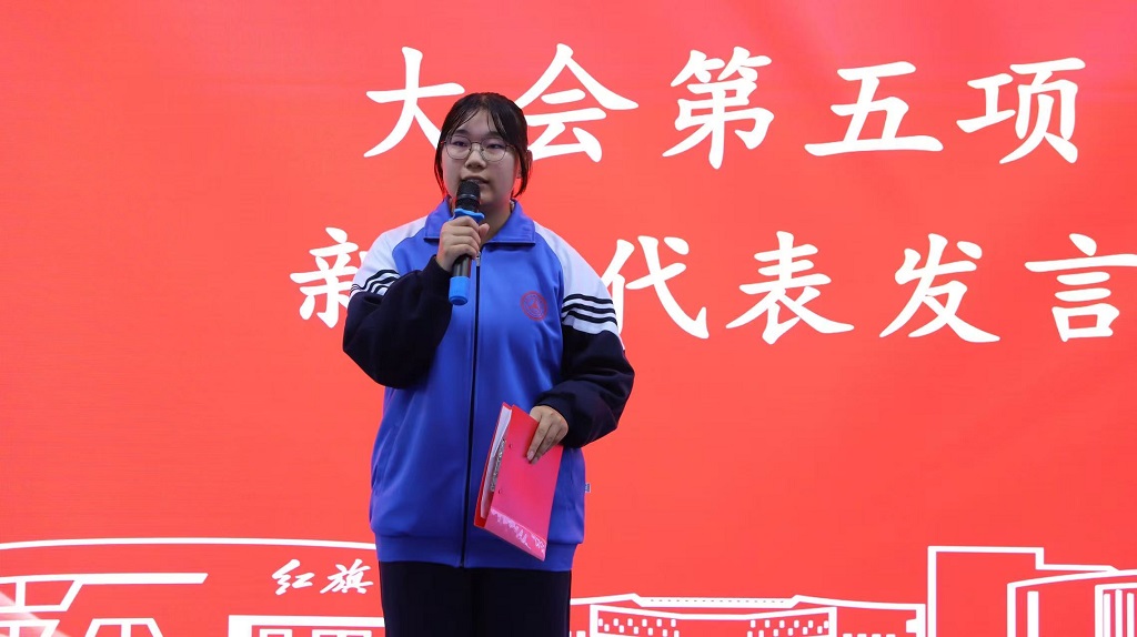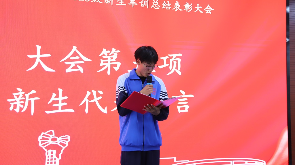 在隆重的表彰环节后,大会进入新生代表发言环节。2025级新生代表走上讲台,代表全体参训同学抒发心声。