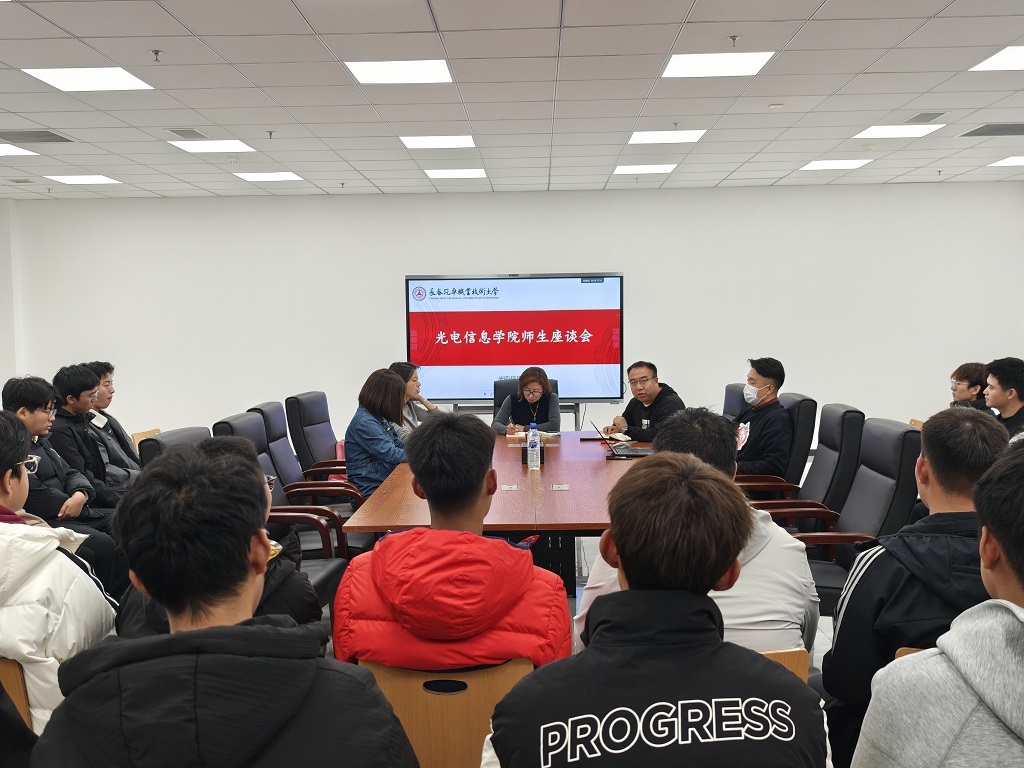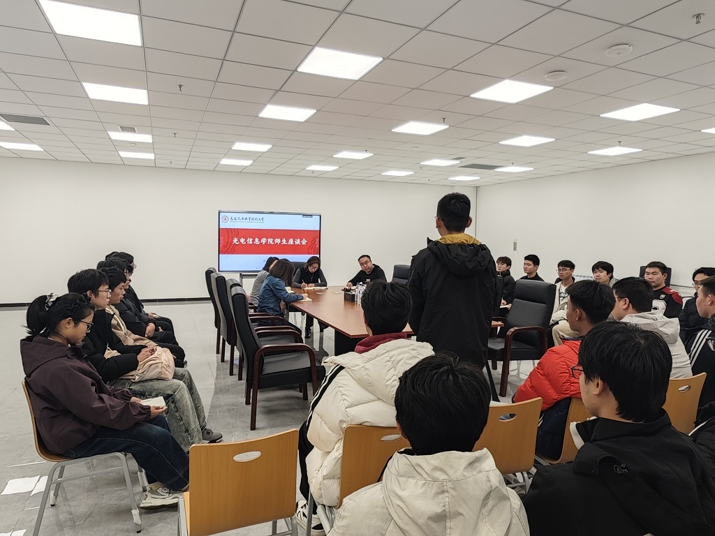 为深入践行立德树人根本任务,进一步拓宽师生沟通渠道,全面提升教育教学质量与人才培养实效,2025年11月4日下午,光电信息学院于307会议室隆重举行了主题鲜明、内容充实的师生交流座谈会。院长陈艳辉、副院长张洋、党支部副书记马海艳、团总支书记王晨、教研室主任及来自各专业的二十余名学生代表共聚一堂,开展了一场真诚而富有成效的师生座谈会。