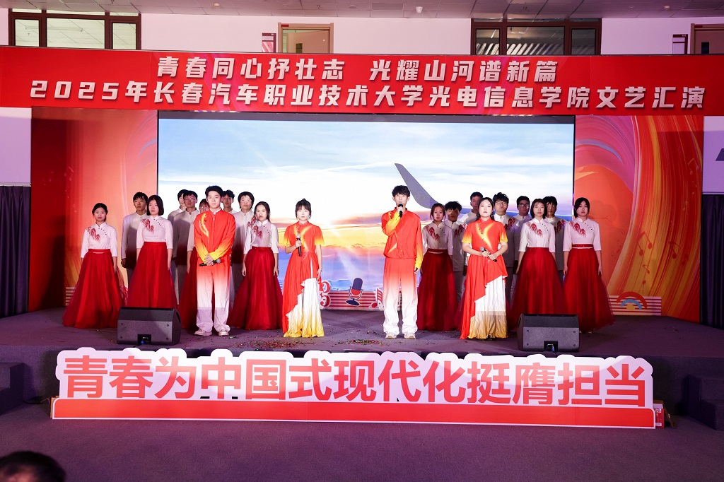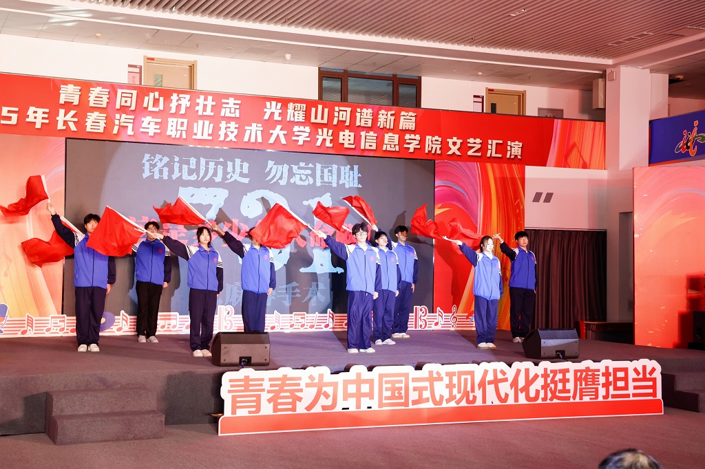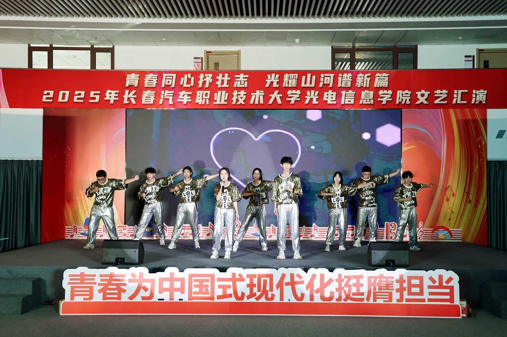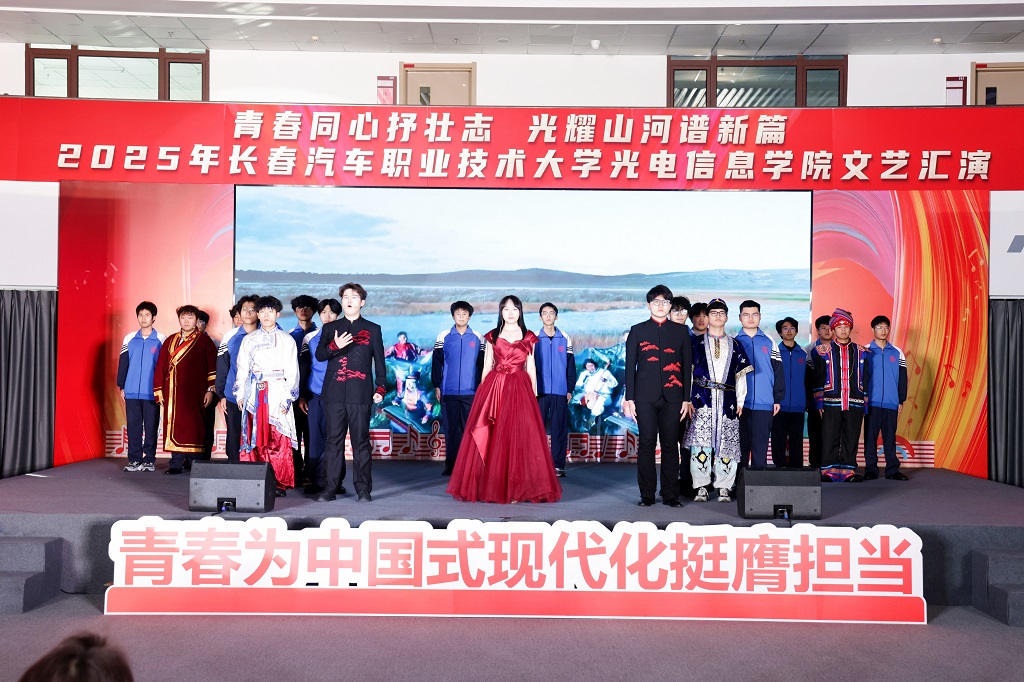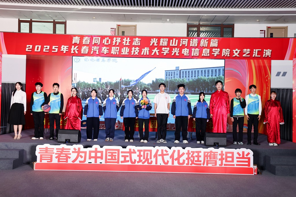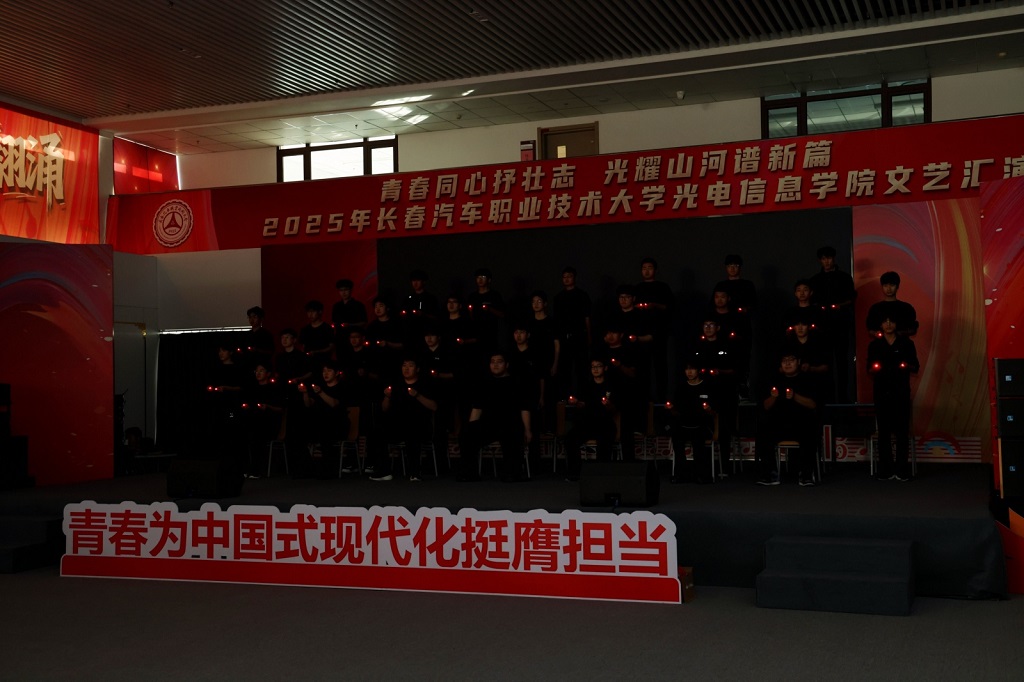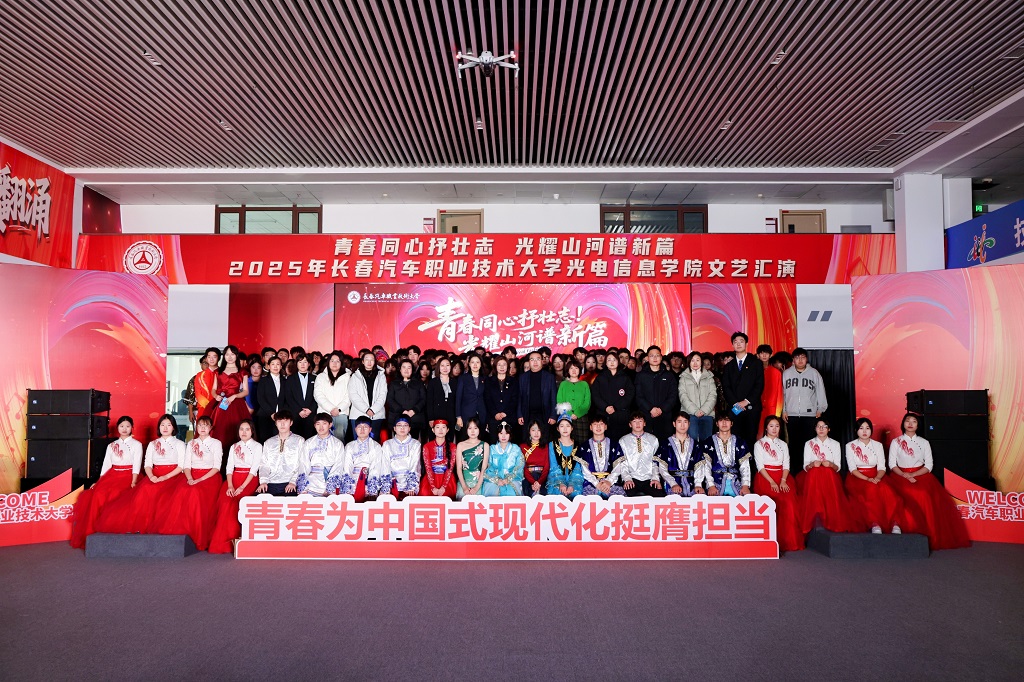 2025年12月11日,光电信息学院“青春同心抒壮志,光耀山河谱新篇”主题文艺汇演在红旗展馆隆重举行。长春汽车职业技术大学副校长韩萍,教务处、学生处、各兄弟学院学生工作负责人以及团总支书记等领导与嘉宾应邀莅临,与学院师生一同观看了这场融思想性、艺术性与时代性于一体的精彩演出。