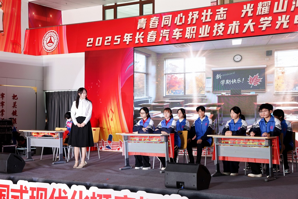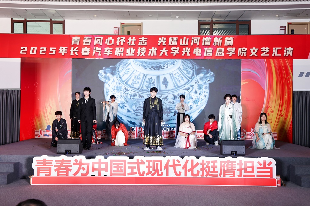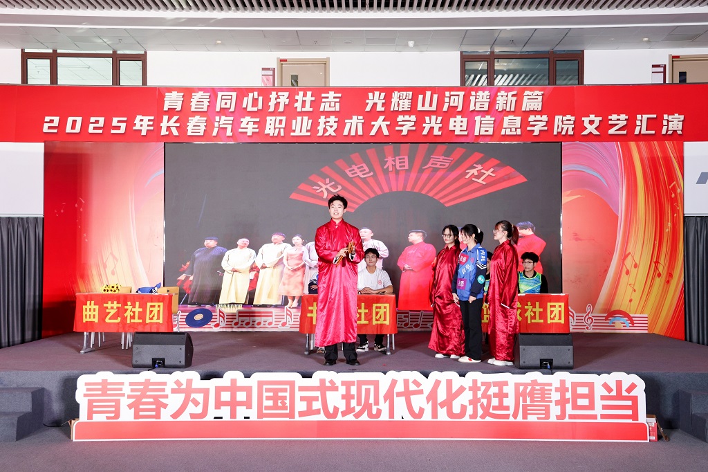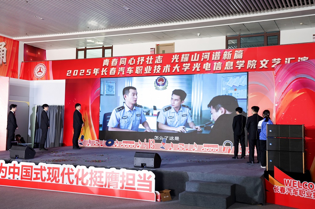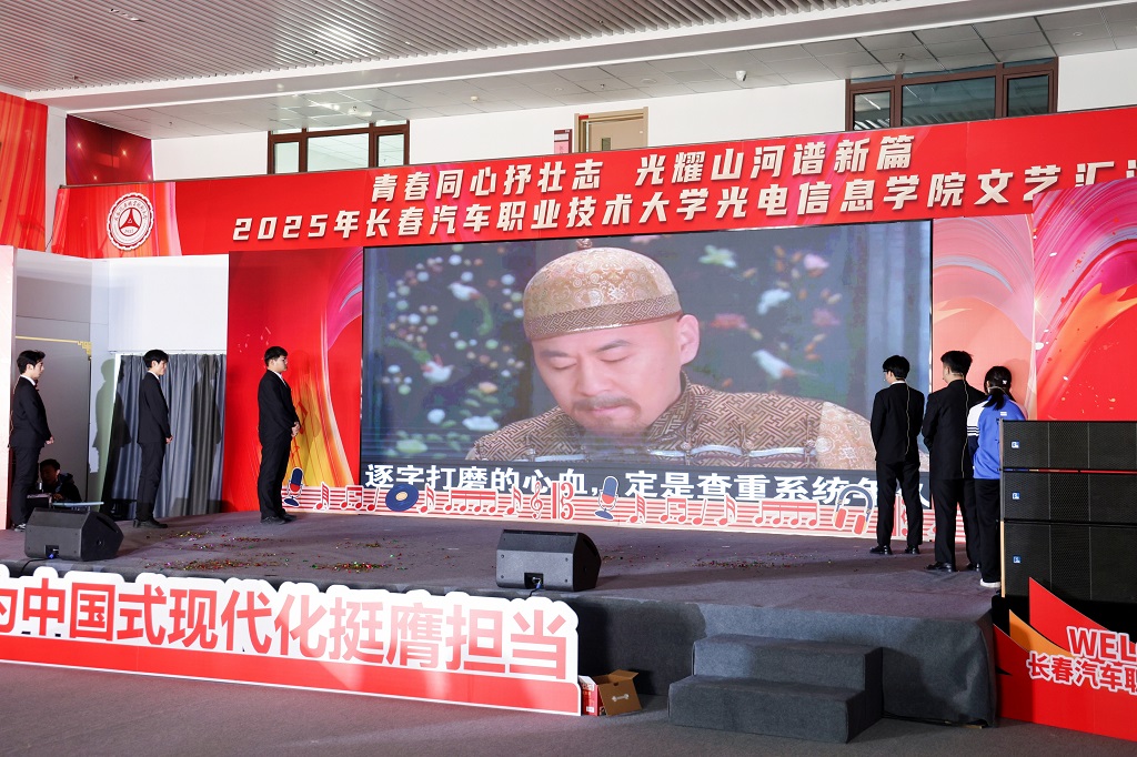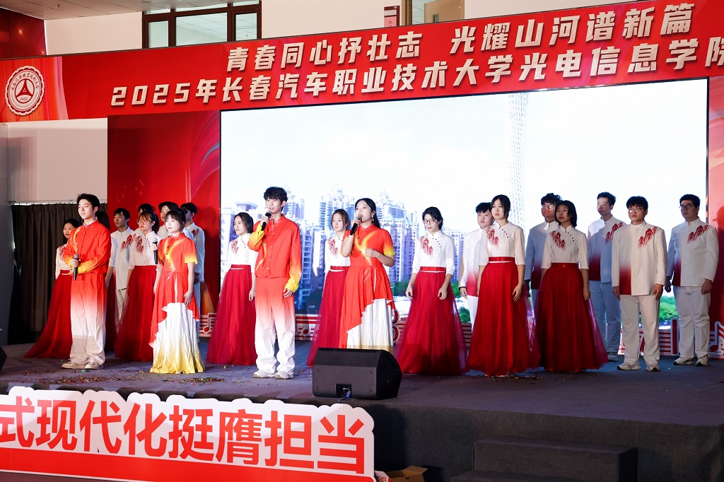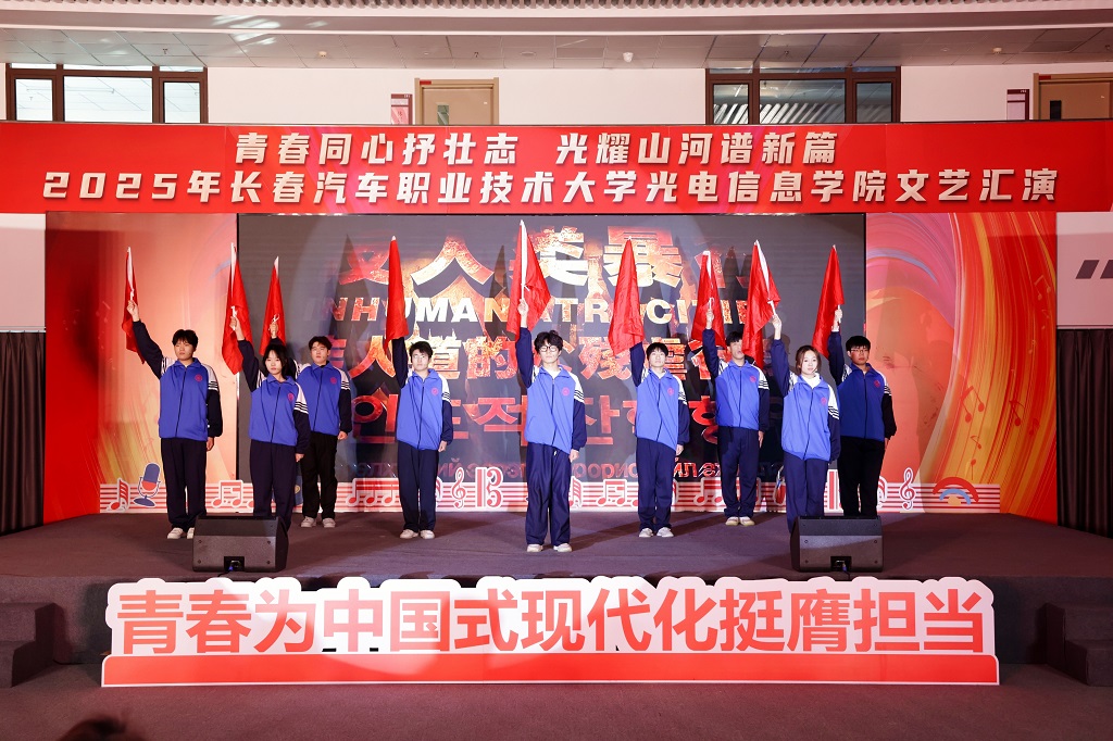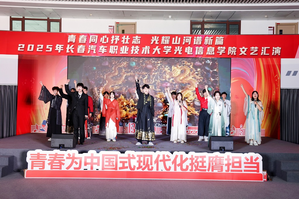 2025年12月11日,光电信息学院“青春同心抒壮志,光耀山河谱新篇”主题文艺汇演在红旗展馆隆重举行。长春汽车职业技术大学副校长韩萍,教务处、学生处、各兄弟学院学生工作负责人以及团总支书记等领导与嘉宾应邀莅临,与学院师生一同观看了这场融思想性、艺术性与时代性于一体的精彩演出。