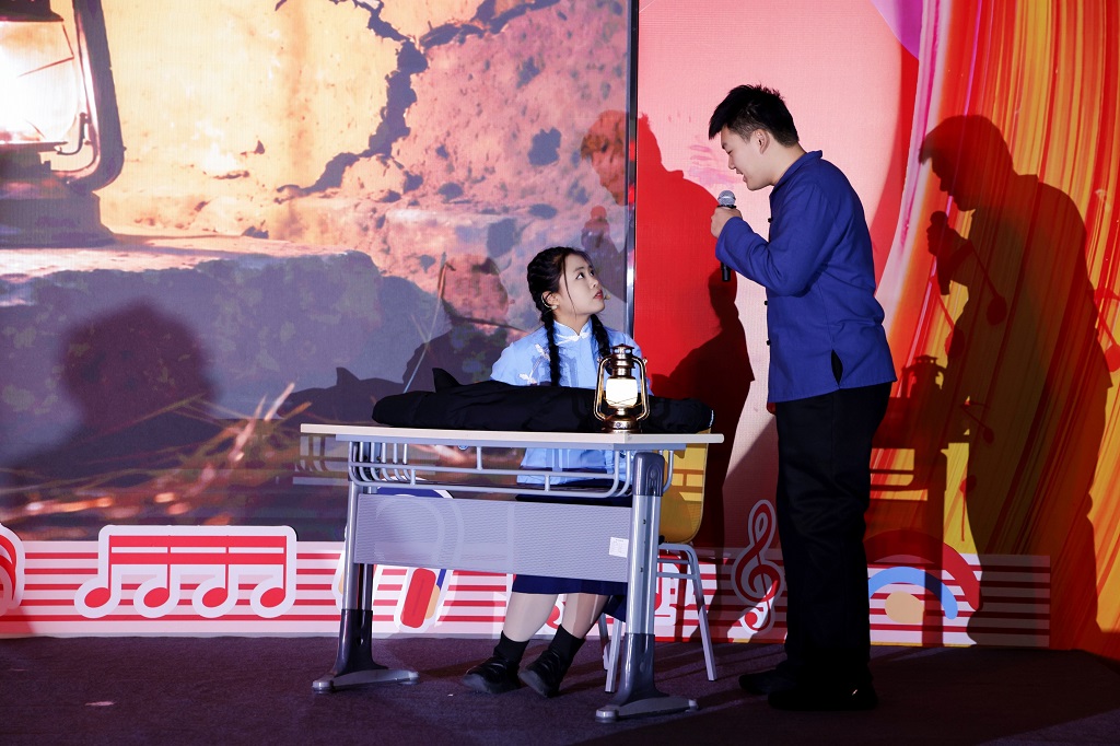 第四篇章“光语筑梦 电启华章”巧妙融汇了文化传承与专业抱负。英语剧《逃出大英博物馆》以创新视角表达了对守护文化遗产的思考。最终,全场大合唱《如愿+我爱你中国》以深情而磅礴的歌声,将个人理想、专业报国之志与爱国情怀完美交融,将现场气氛推向高潮。